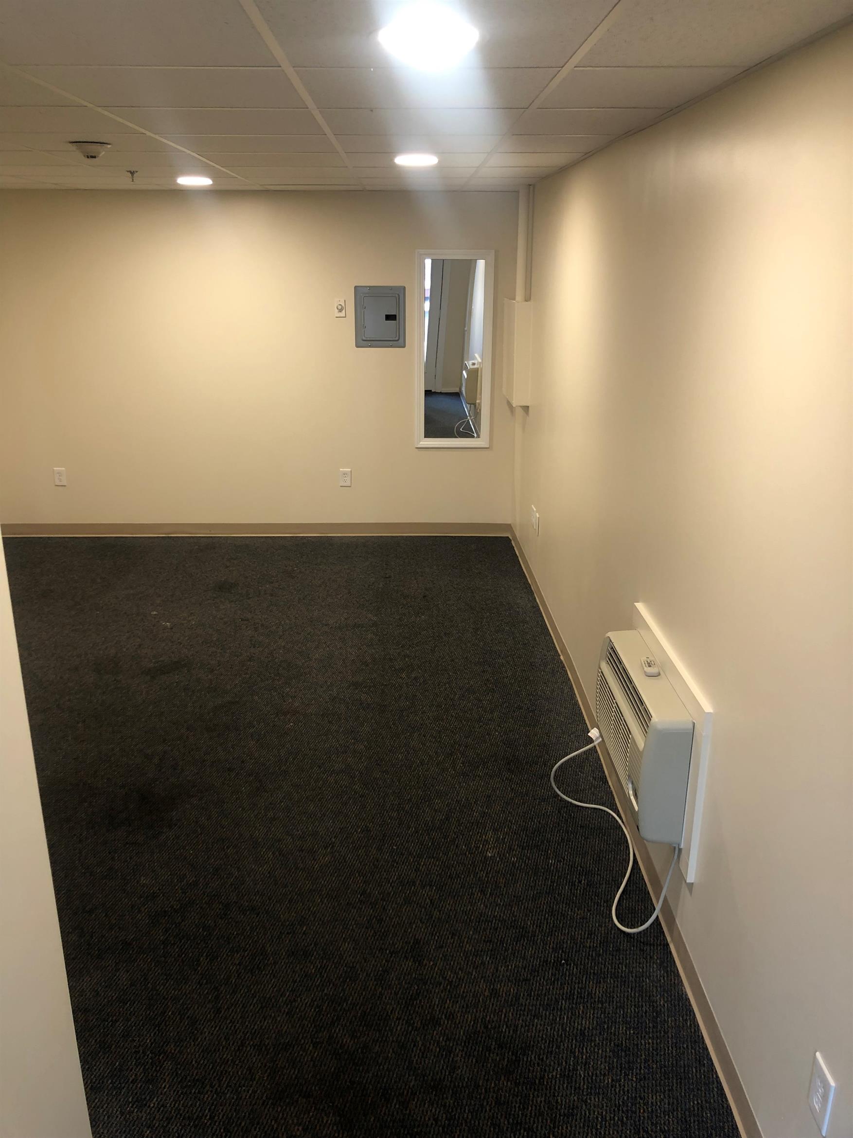 Walk-in first floor one room office space in Trackside Plaza, the renovated former home of Corcoran Shoe factory. This space has its own entrance directly from the outside and is a perfect spot for your growing small business. Roughly 23′ x 13′, it’s perfect for 2-3 workstations. You’ll have access to building wifi and Comcast and Verizon FiOS are both available as well. Utilities are separate. Plenty of parking available on-site. First, last and credit check required.